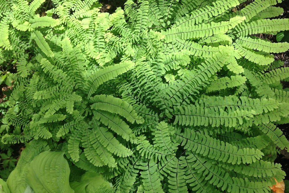 - Maidenhair Fern (Adiantum spp.): Recognizable by its delicate, fan-shaped fronds and distinctive black stems, maidenhair ferns lend an air of elegance to any garden.