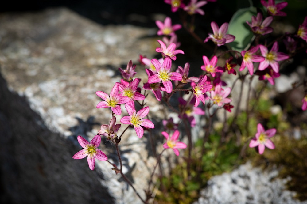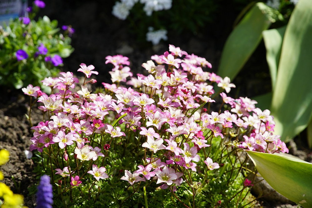 A low-growing perennial with a cushion-like appearance, mossy saxifrage has tiny pink or white flowers and thrives in cool, shady spots.