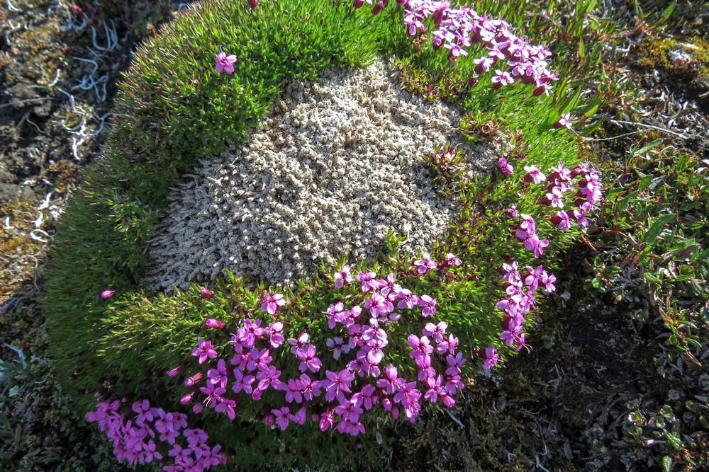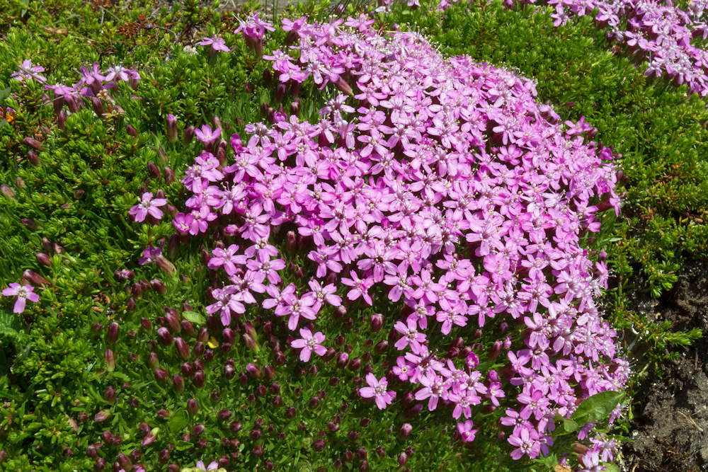 A high-altitude cushion flower with dense green foliage and small pink or purple flowers. It’s often found in alpine environments and can tolerate harsh conditions.