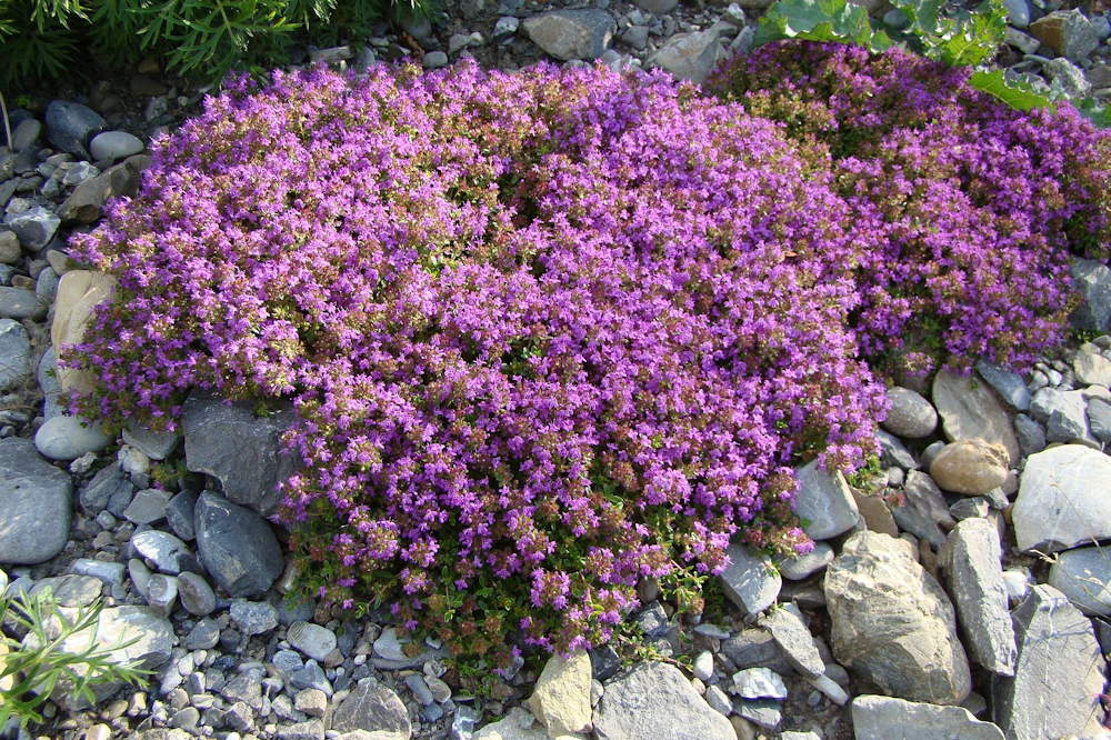 This aromatic cushion plant is known for its tiny purple flowers and pleasant fragrance. It’s often used in rock gardens and as ground cover.