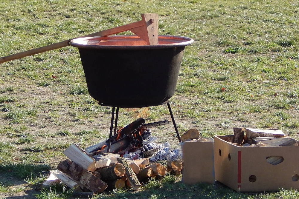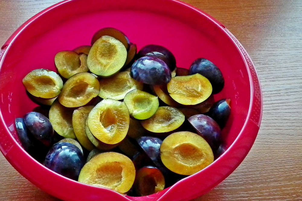- Preparation: Wash the plums thoroughly. Cut them in half and remove the pits. Place the plums in a large cauldron or pot.