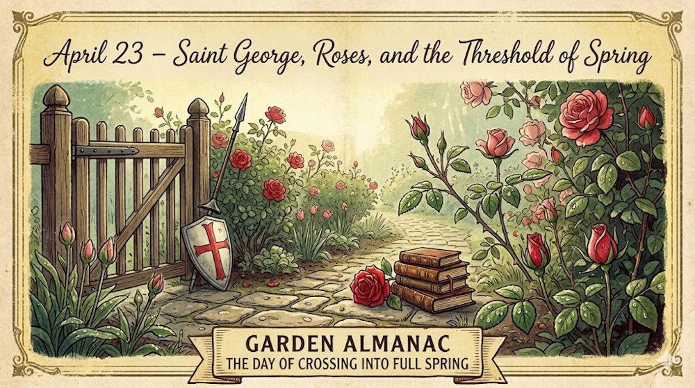 April 23 is one of those dates where folklore, season, and symbolism meet so naturally that the day almost seems to write itself. Across much of Europe, Saint George’s Day has long marked a true turning point in spring: a time of livestock going out, fields waking fully, and the year stepping into a more confident phase. In a garden almanac, this makes the date feel less like a commemoration and more like a threshold.