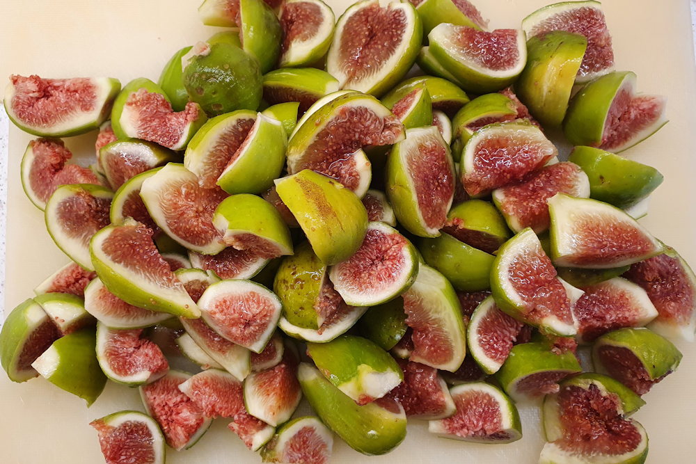 - Wash the freshly picked figs thoroughly and cut off the stems. Slice the figs into thin, even pieces, and set them aside.