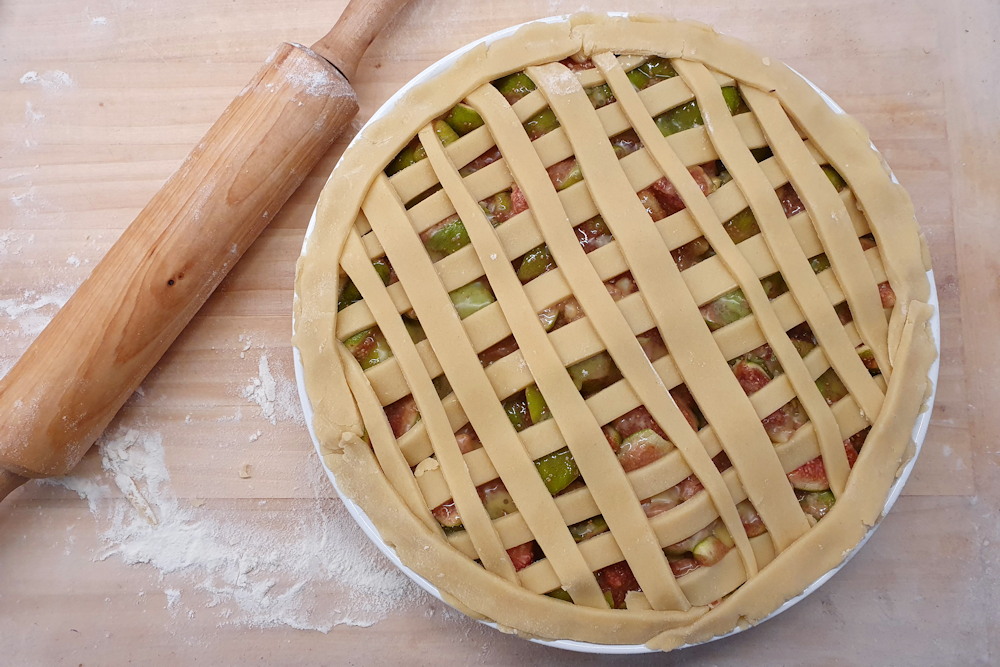 - Roll out the dough on a floured surface to fit your tart pan or baking dish. Carefully transfer the dough to the pan and press it into the corners and edges.