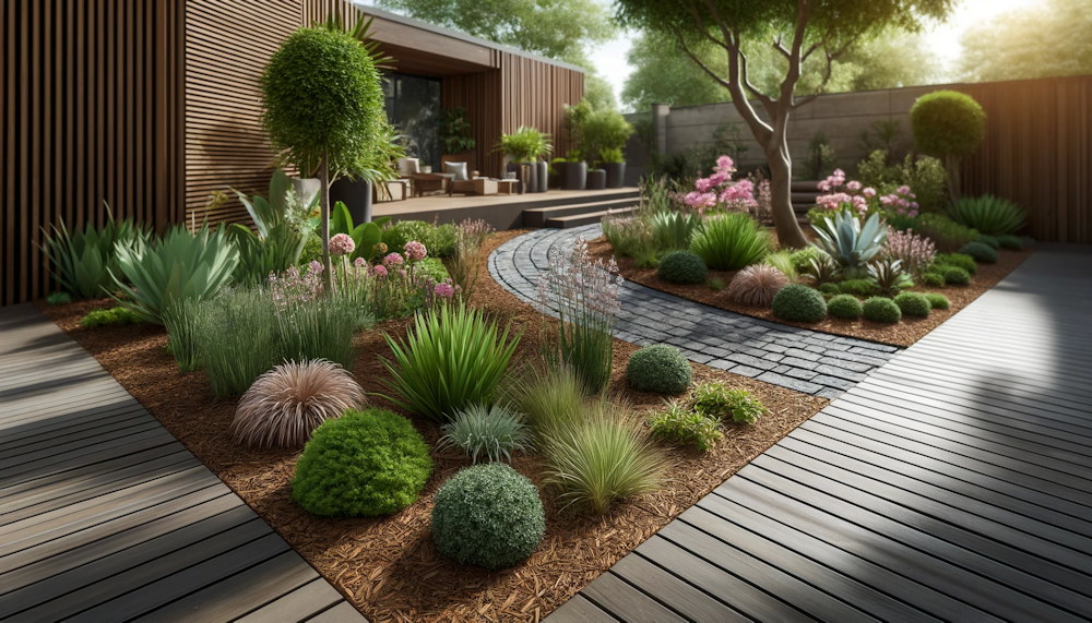 Gravel and river rock mulch are inorganic materials commonly used in xeriscaping and arid landscapes where water conservation is paramount. Unlike organic mulches, gravel and river rock don’t decompose, offering long-term durability without the need for replenishment. This quality makes them ideal for regions with intense sunlight and minimal rainfall, as they do not break down or retain moisture, which can be beneficial in preventing root rot.