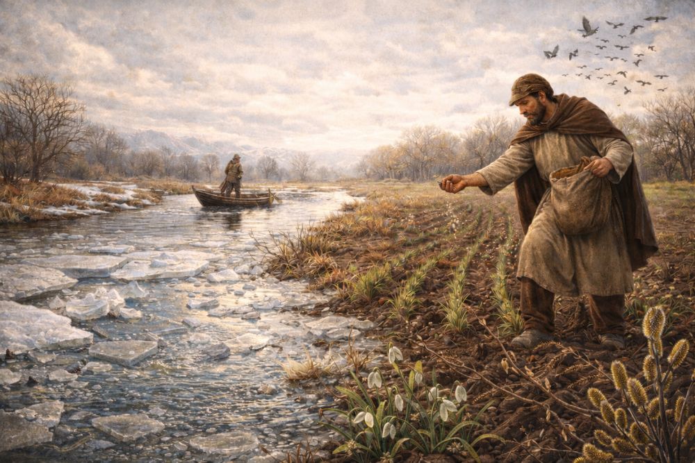 Comparable late-winter observations appear in Scandinavian, Alpine, and Slavic traditions, where river ice, migrating birds, and sap movement in trees were watched carefully. In parts of Northern Europe, the first visible dripping from roofs or the cracking of lake ice was treated as a practical signal: winter stores were nearly spent, and preparation for spring intensification had to begin.
