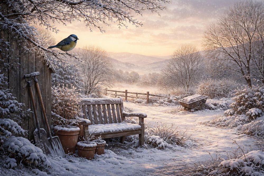 – Walk the garden without tools. – Notice where light settles longest. – Observe structures, edges, and wind paths revealed only in winter stillness.