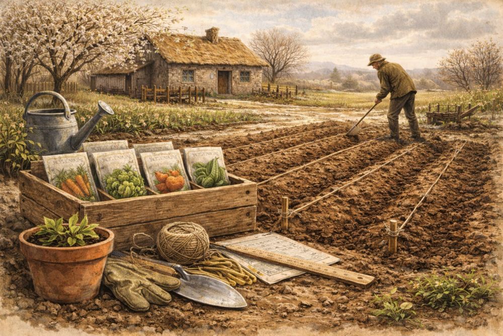 Mid-March in the garden belongs to a subtle kind of order. The loudness of spring has not arrived yet, but preparation is everywhere: seed packets reappear, beds are reconsidered, the light stretches longer, and the mind begins arranging rows, paths and future growth. At this stage, the garden is still part intention, part earth — and that makes it a fitting day for thinking about pattern, proportion and timing.