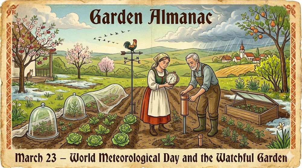 In the Garden Almanac, March 23 becomes a day of watchfulness rather than spectacle. It reminds us that weather is not merely something that happens above the garden. It enters the soil, touches the buds, shapes the moisture, and decides the rhythm of work.