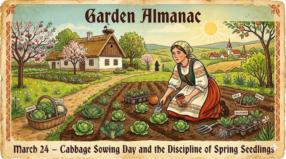 March 24 belongs to one of the most grounded moments in the spring garden year: sowing for substance. In Hungarian folk tradition, this day is associated with cabbage and other brassicas, and with the belief that timely sowing brings abundance.