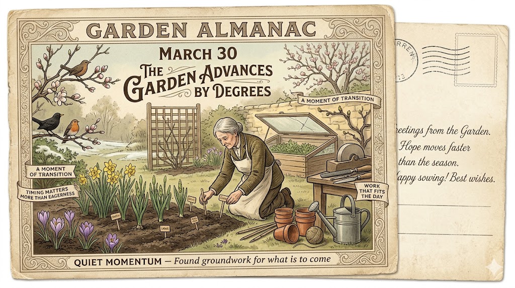 In the Garden Almanac, March 30 marks the kind of progress that is easy to overlook because it is built from ordinary tasks and attentive choices. But those quiet decisions are often what separate a season that merely happens from one that truly flourishes.