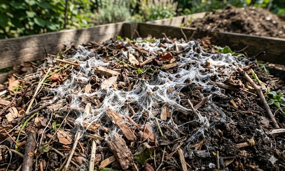 Compost is not meant to be sterile. It is a living ecosystem filled with microorganisms, fungi, insects and worms working together. The white fungal network is simply one part of that community. Its presence often means that organic matter is actively being transformed into nutrient-rich compost.