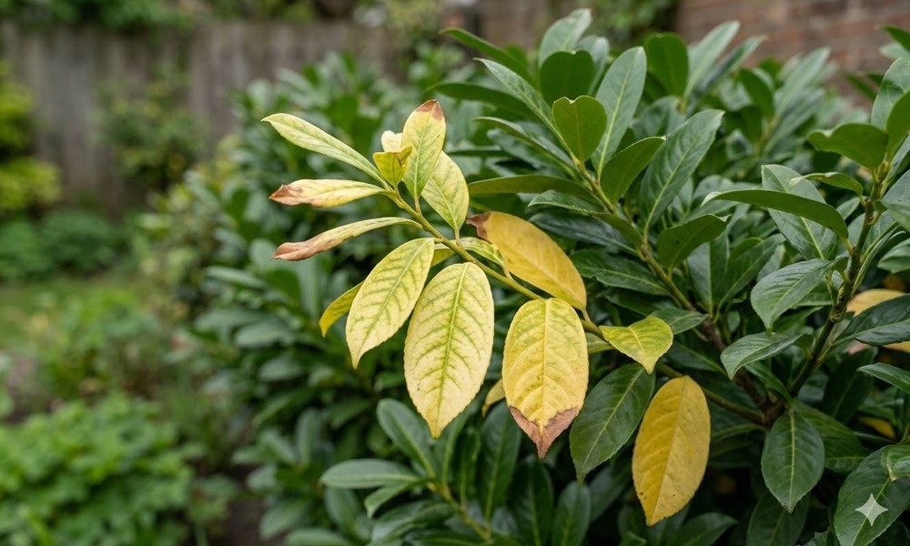 Cherry laurel (Prunus laurocerasus) is valued for its evergreen foliage, which makes yellowing leaves especially noticeable and concerning. In most cases, yellowing is not caused by a single issue, but by environmental stress affecting roots, water balance, or nutrient availability.