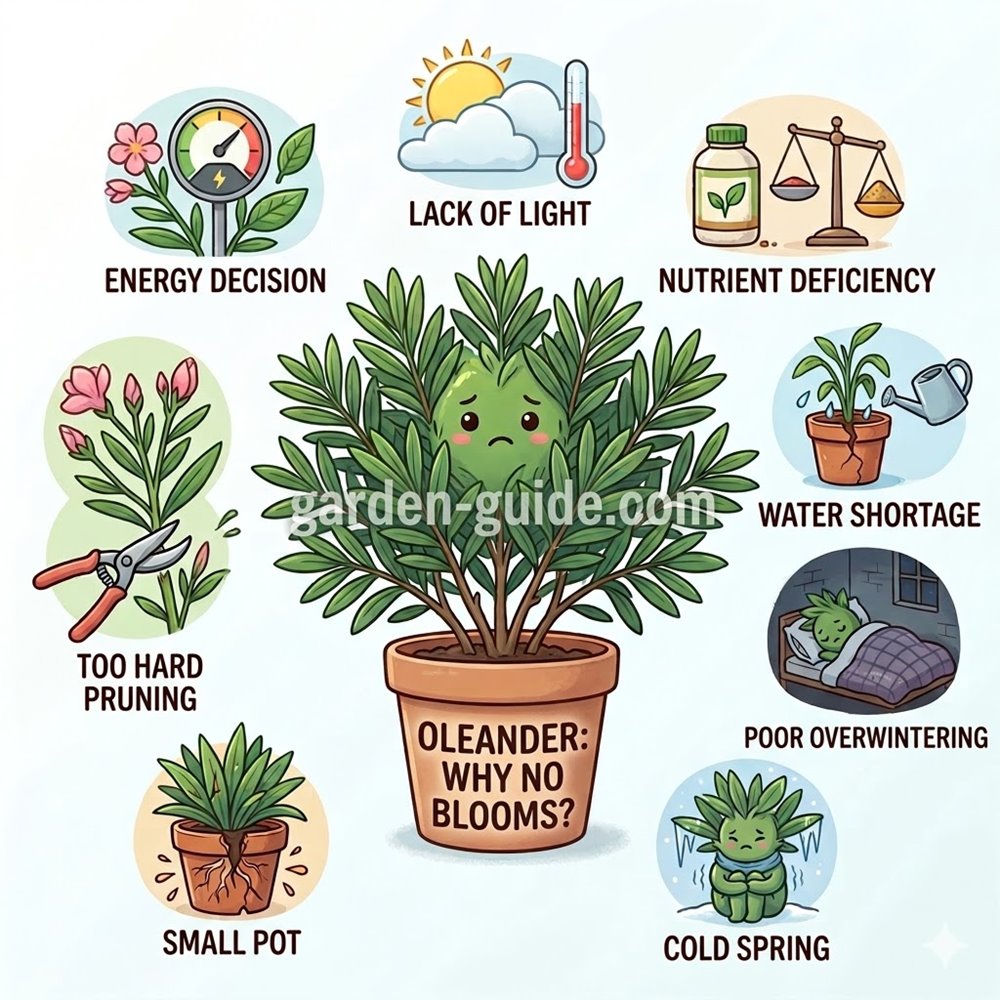 When oleander does not bloom, it is not in a bad mood. It is making a survival decision.
